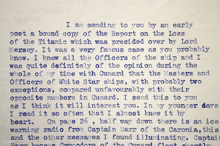 blunt opinion of the safety standards of his rivals at the White Star in this 1968 letter which he sent with the 1912 report.